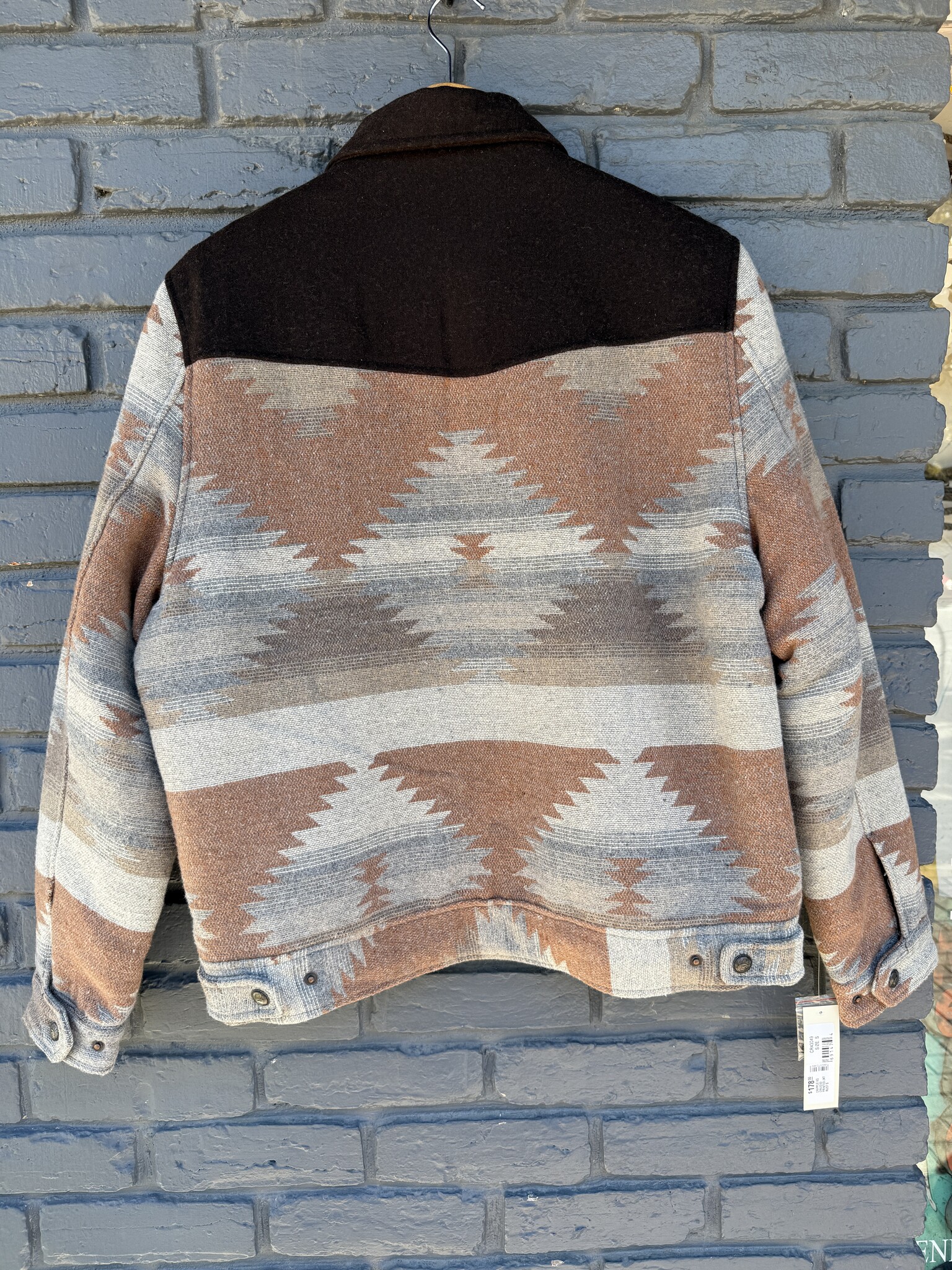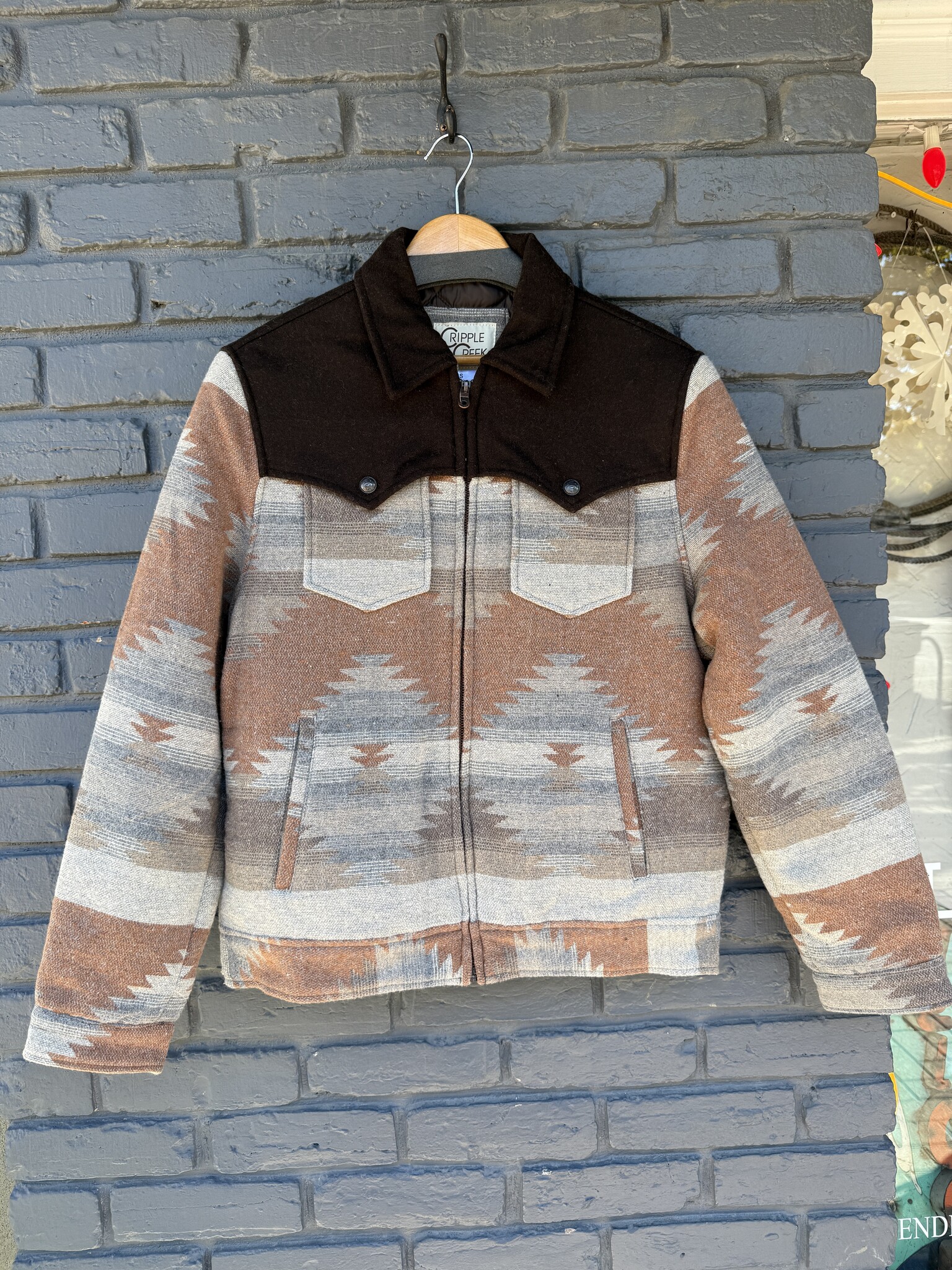 Rugged Western style meets everyday function in this Cripple Creek printed jacket. Designed with a multicolored Southwestern pattern and dark brown yokes, it features a concealed carry interior pocket, warm polyester fill, and wool-blend detailing for comfort and durability.