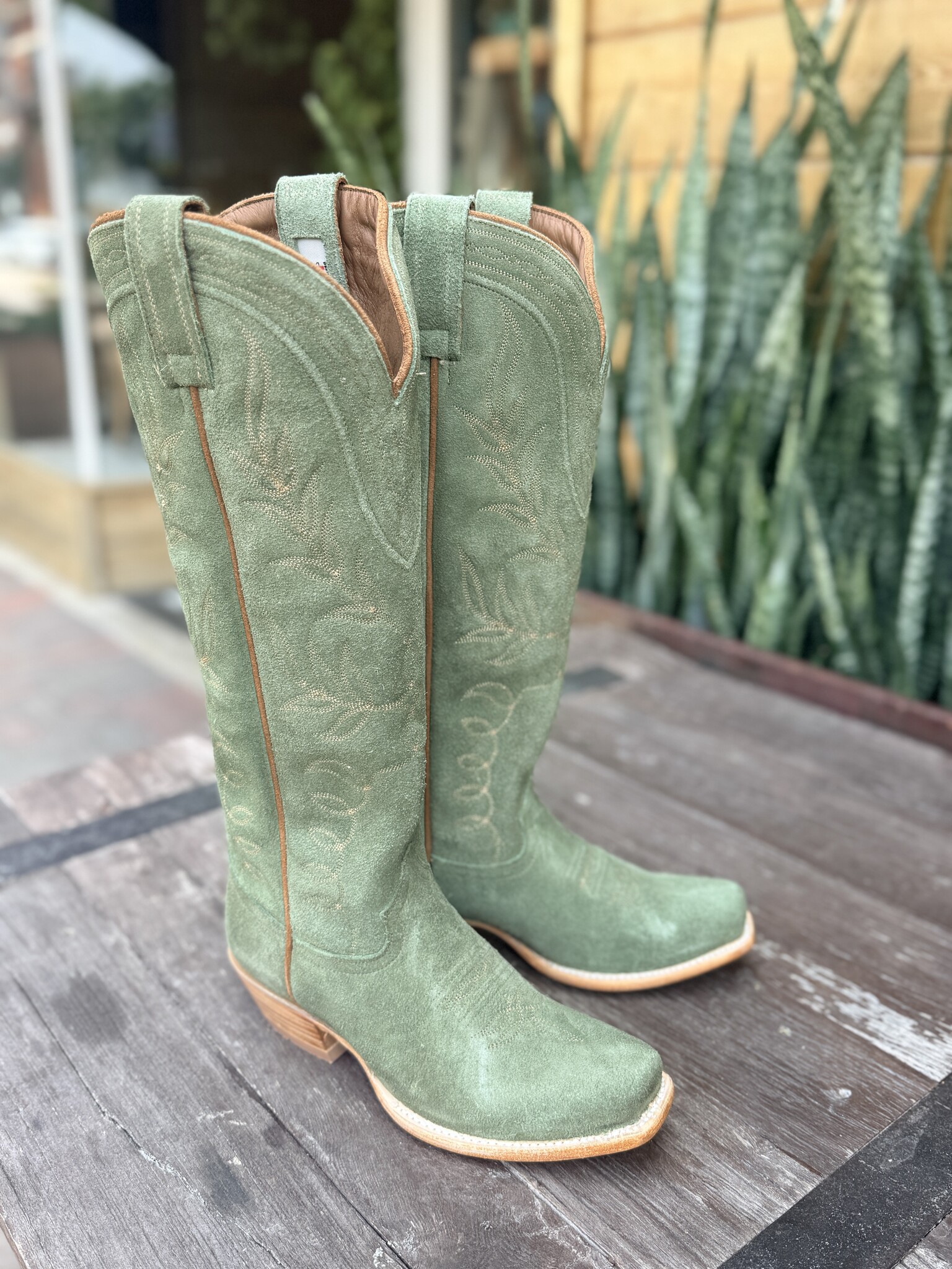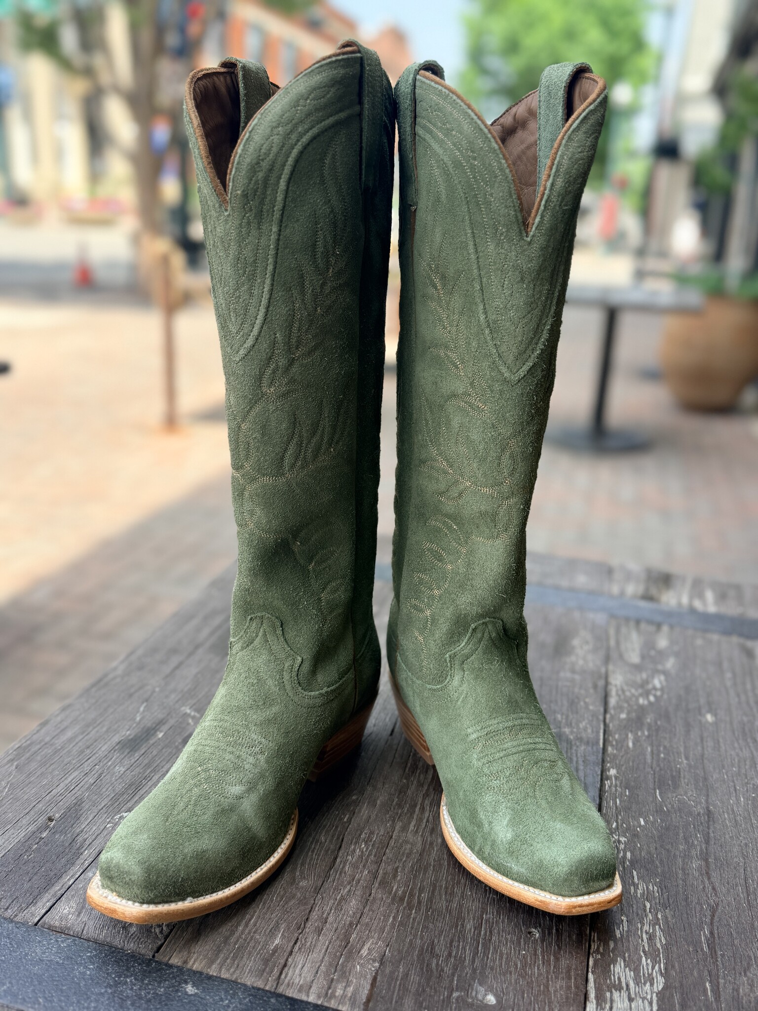A timeless statement boot with a fresh, standout edge. Crafted in soft mint roughout leather from top to toe, this tall silhouette brings together classic Western heritage with refined, modern styling. The exclusive narrow square Elite toe gives it a sleek, flattering shape, while the signature Wisteria stitch pattern adds a subtle nod to Hyer’s rich history.