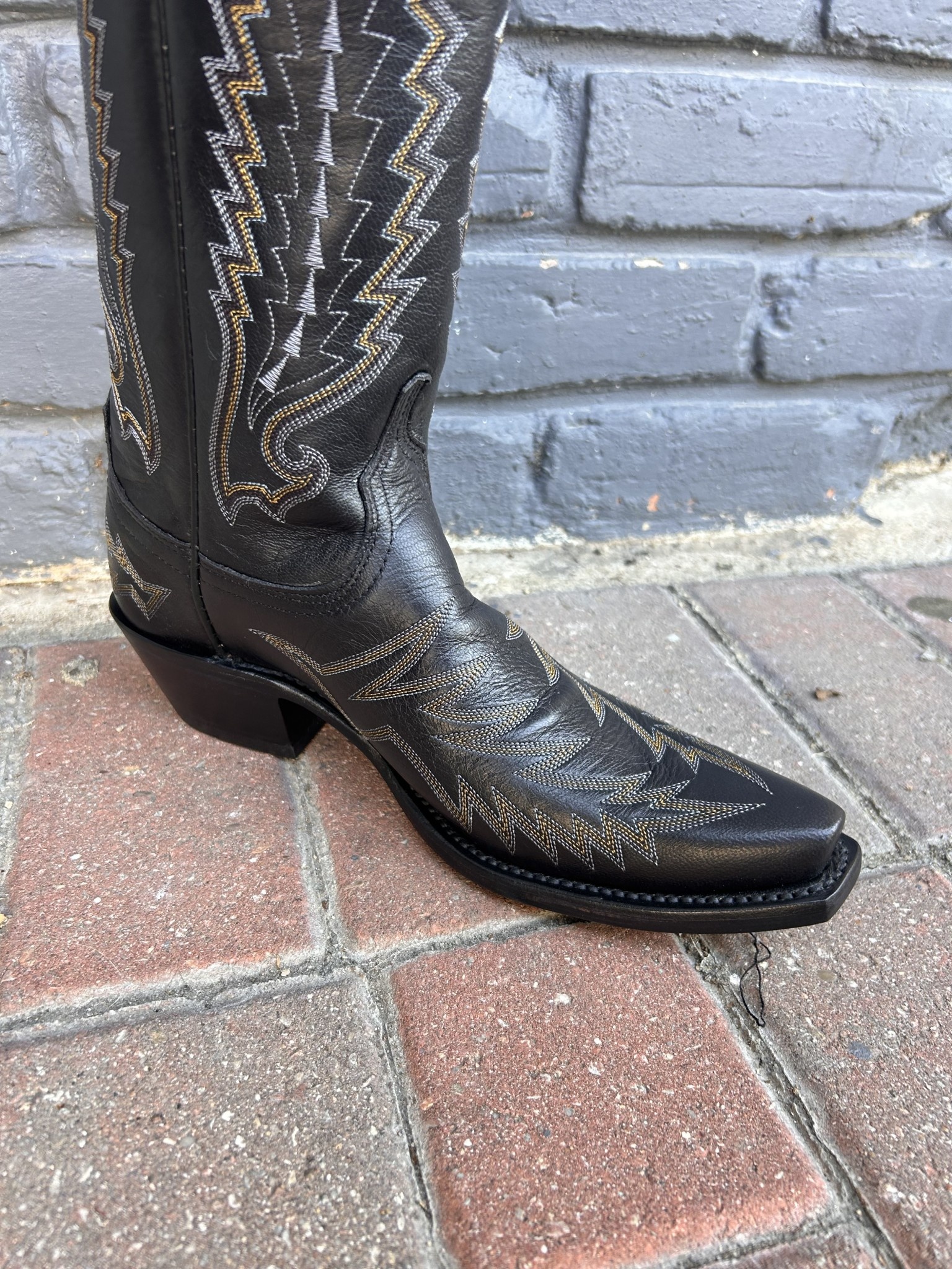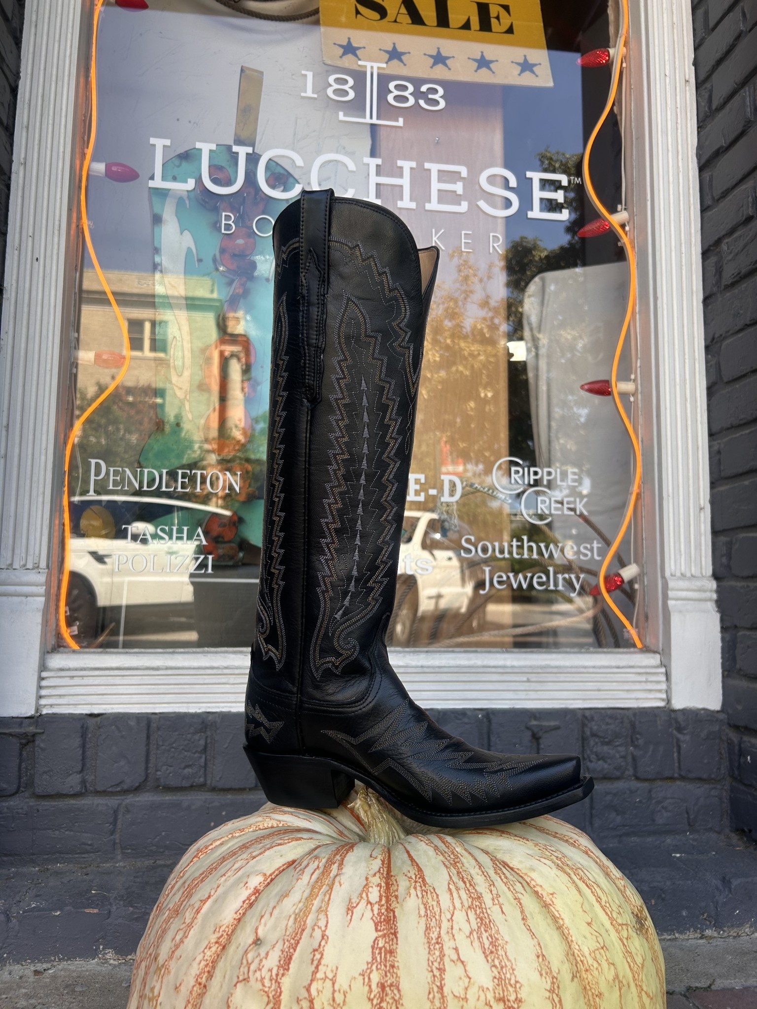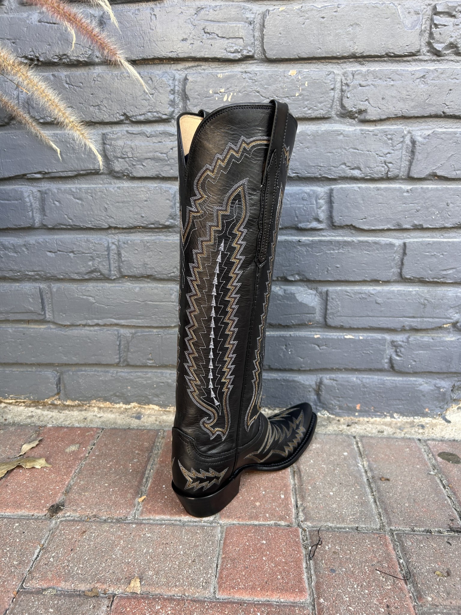 At 17” tall, Priscilla is an iconic boot for women. With its traditional western stitch pattern goat leather construction, Priscilla offers an even balance between cowgirl chic and timeless flair. Additional features include a classic pull-on silhouette and a spring toe for a kick of style. Leather sole. Handmade in Texas.