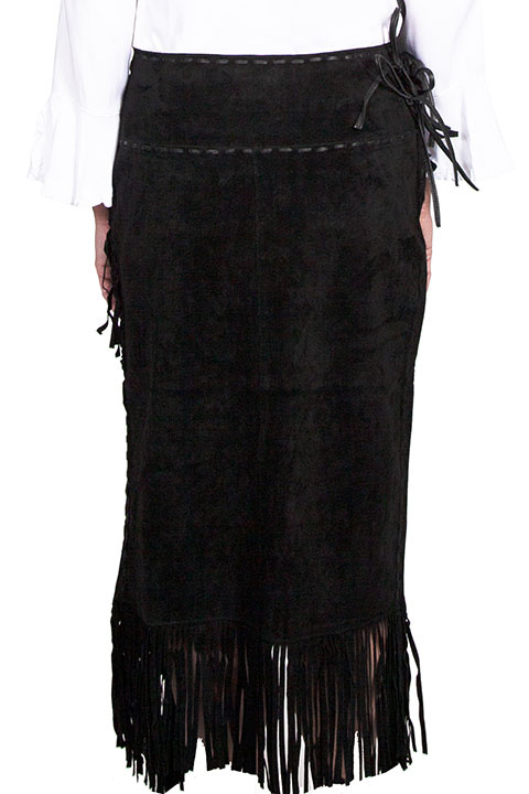 Make a statement with this bold suede fringe skirt. Designed with a flattering high waist, angled hemline, and flowing fringe that moves with every step, it features handcrafted whipstitch accents for a touch of artisan style. Perfect for pairing with boots, knits, or denim for a chic Western look.