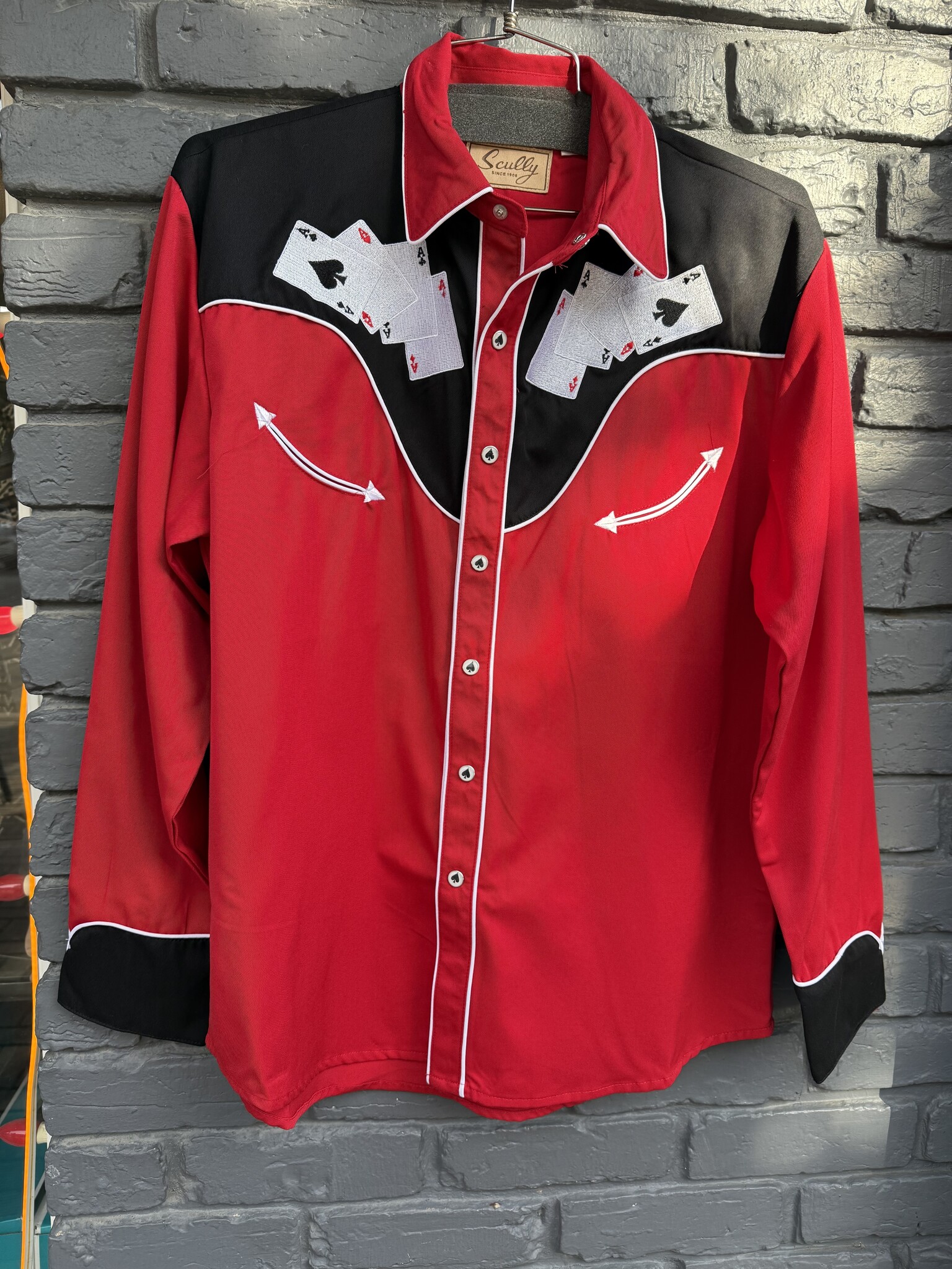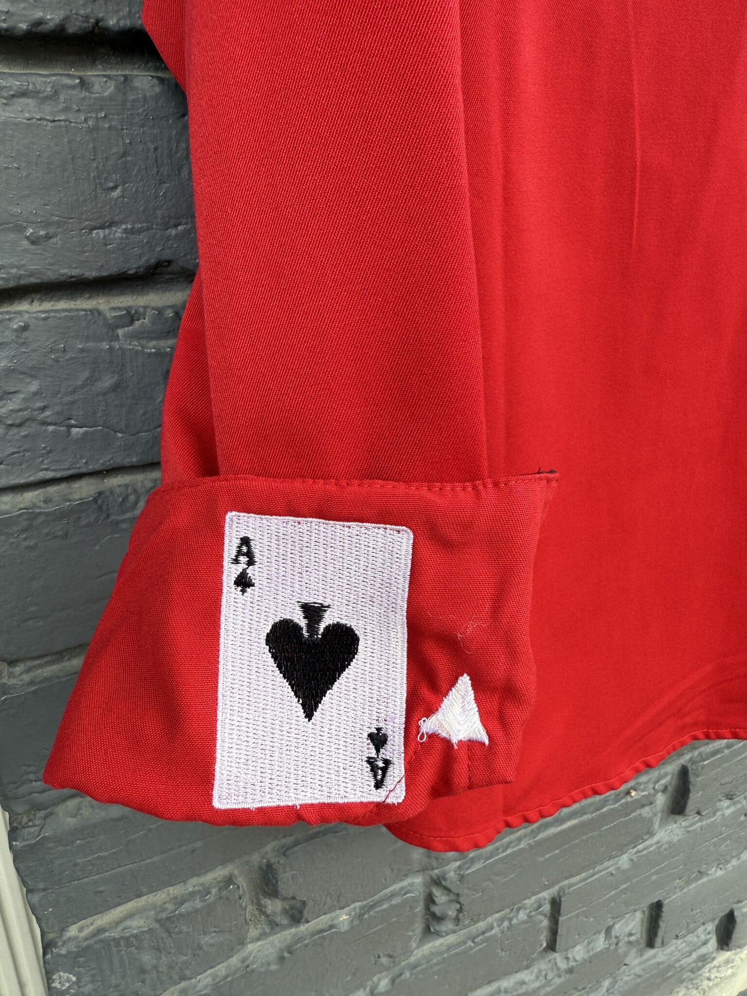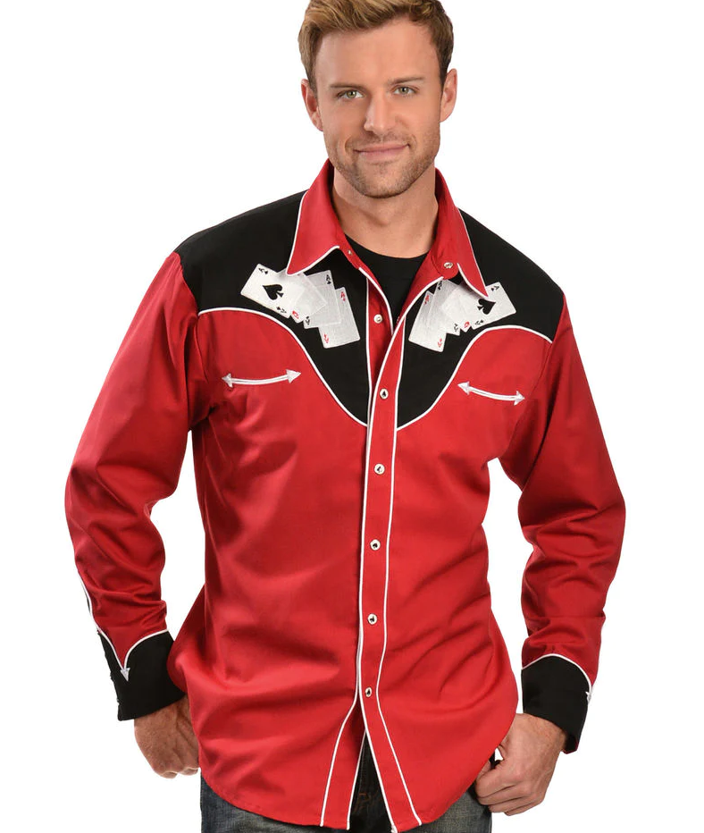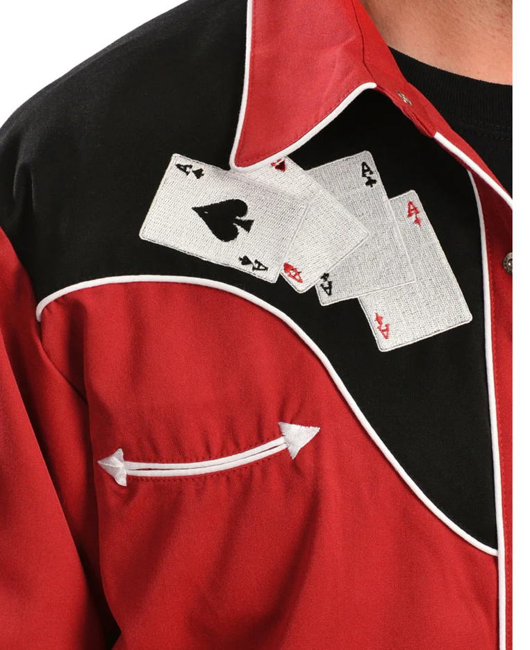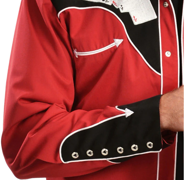Ace cards embroidery highlight front western yokes; ace card embroidery is also featured up-the-sleeve