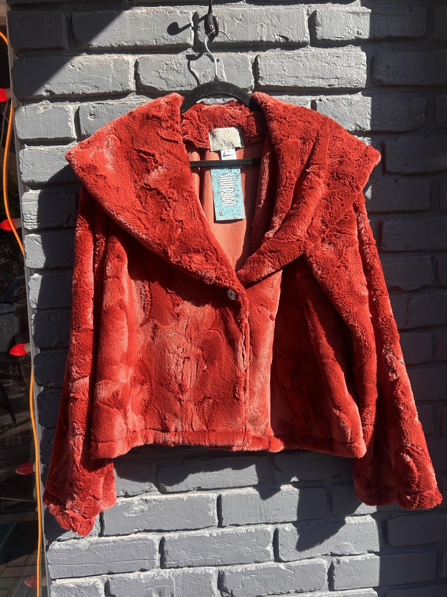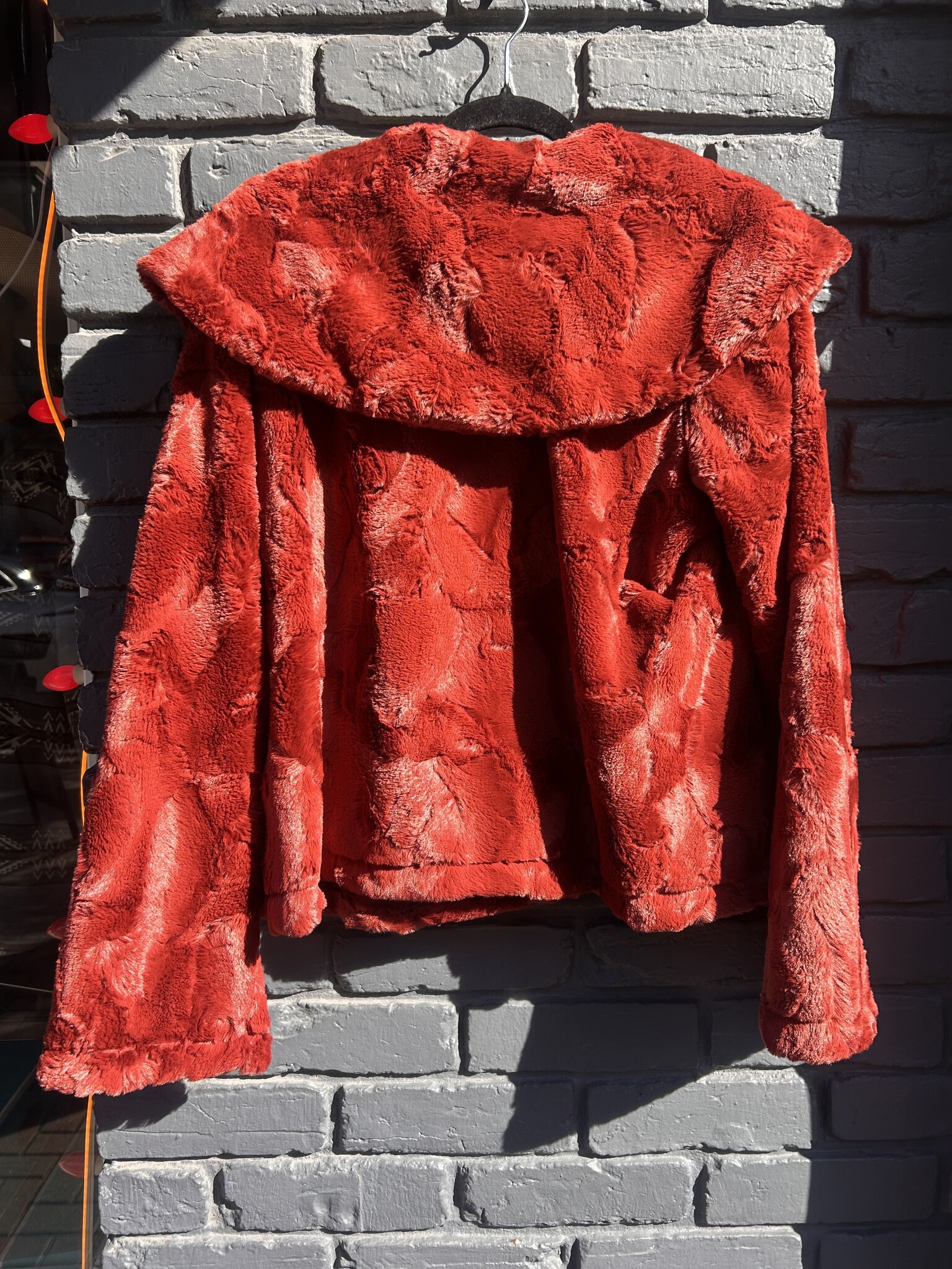 Make a bold statement with this luxurious faux fur jacket in vibrant red. Soft, plush, and irresistibly cozy, it features a wide collar and relaxed fit for effortless glam. Perfect for adding warmth and a pop of color to your winter wardrobe — chic, comfortable, and undeniably eye-catching.